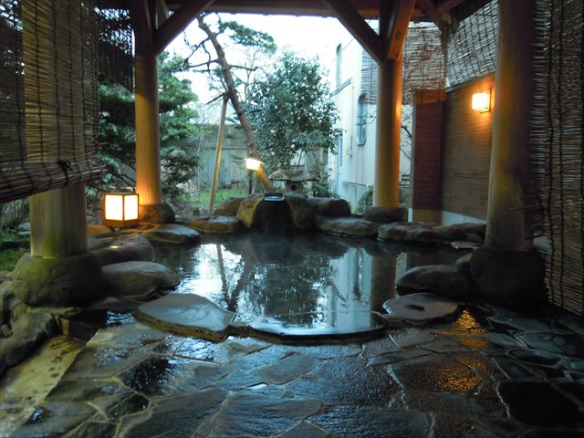値段/¥12,350~ 風呂/源泉かけ流し温泉・露天 食事/食堂 、 和食犬代/¥3,240 犬OK/小型犬 、部屋のみ 犬設備/無し HP