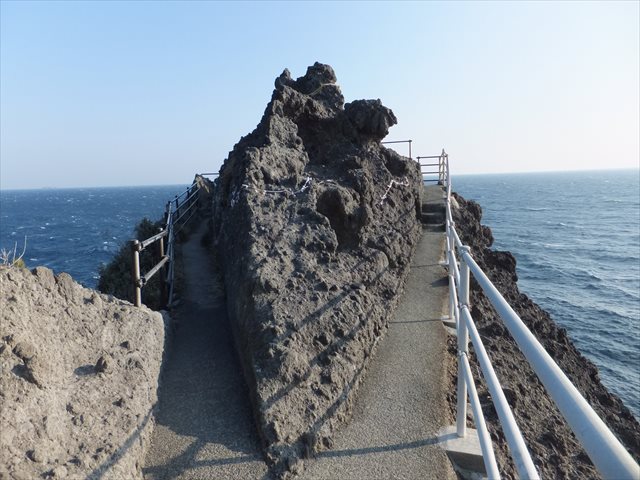 相模灘と遠州灘を分ける伊豆半島最南端の岬。石廊崎の灯台の先には断崖に石室神社があります。